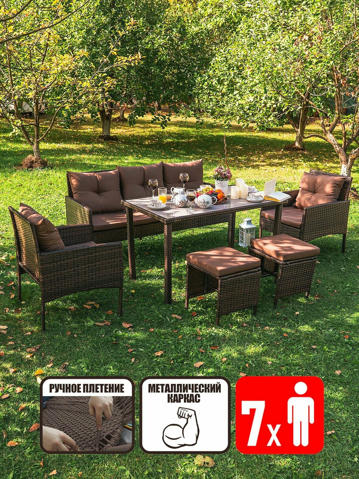 Купить Садовая мебель GARDINI Фьорд-7, искусственный ротанг, шоколад, для 7 человек