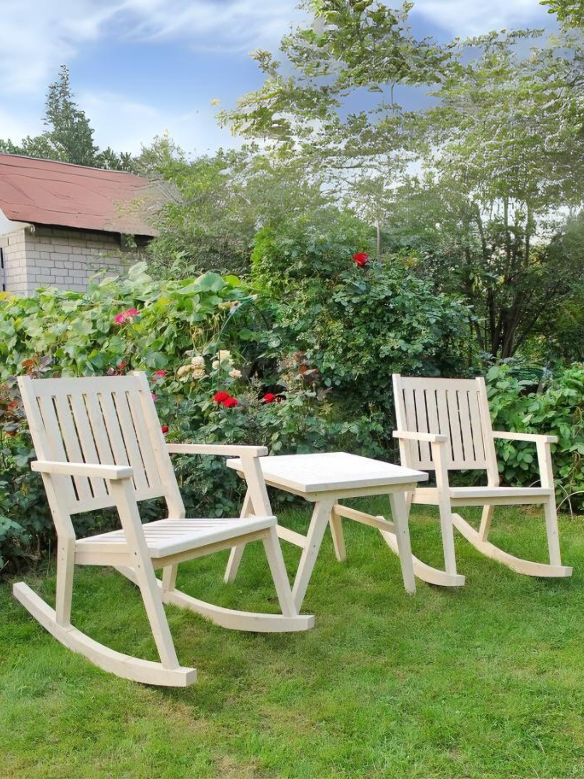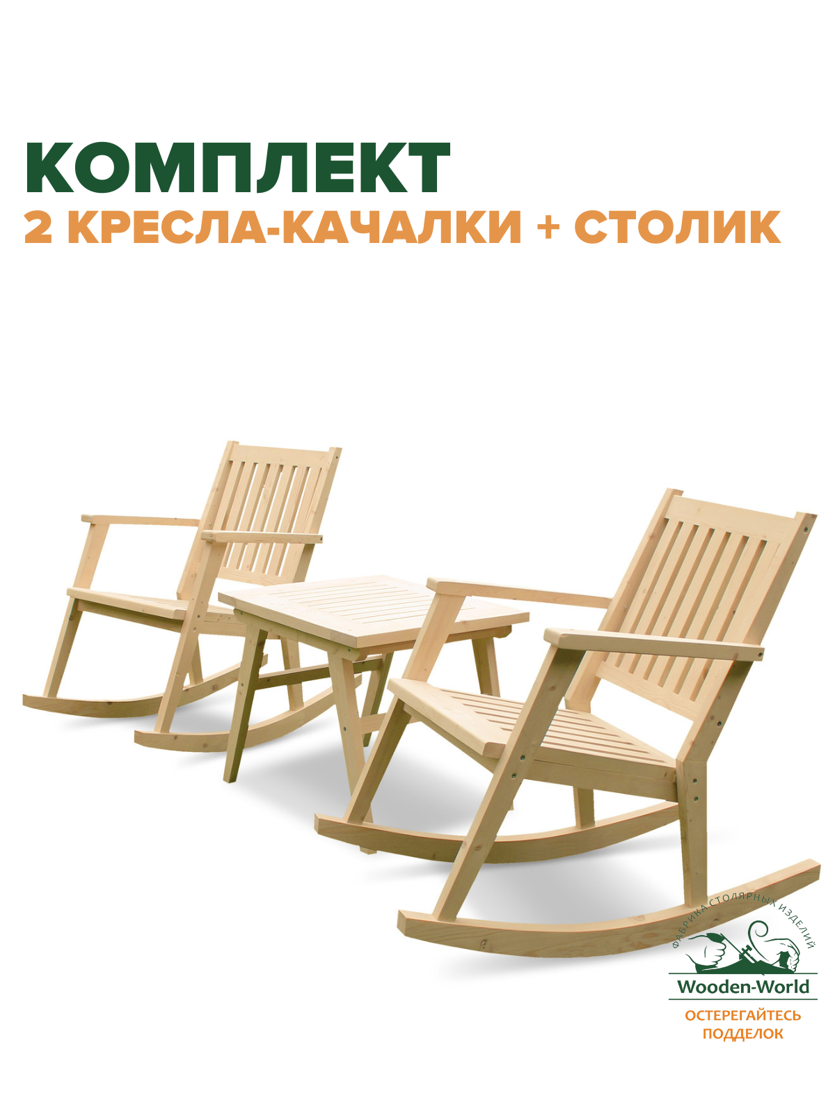 Кресло качалка 2шт со столиком деревянные, садовая мебель комплект интересное: