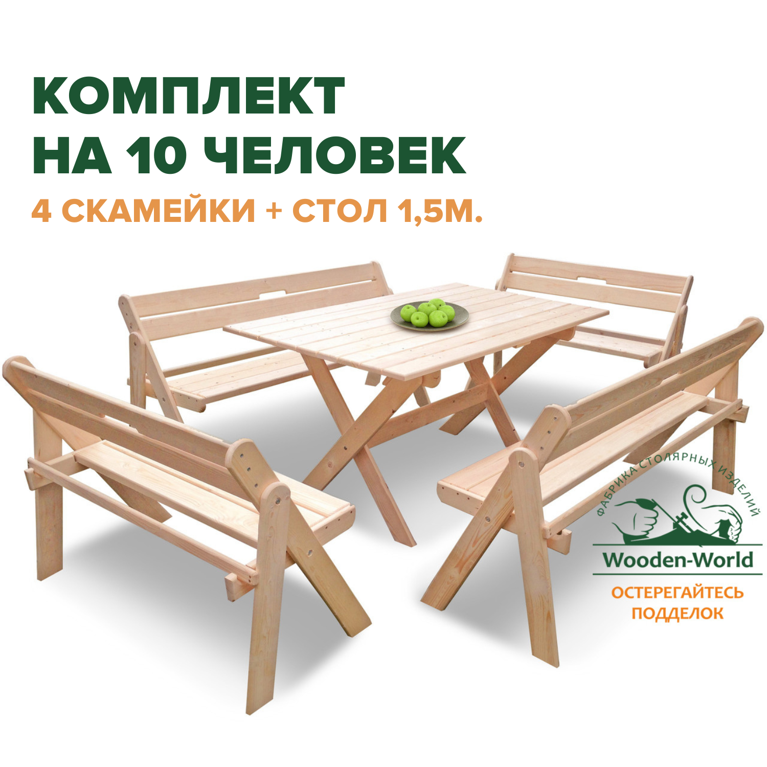 Wooden-World Комплект садовой мебели "на 8 человек" складной деревянный (Стол, Скамейки, Стулья)