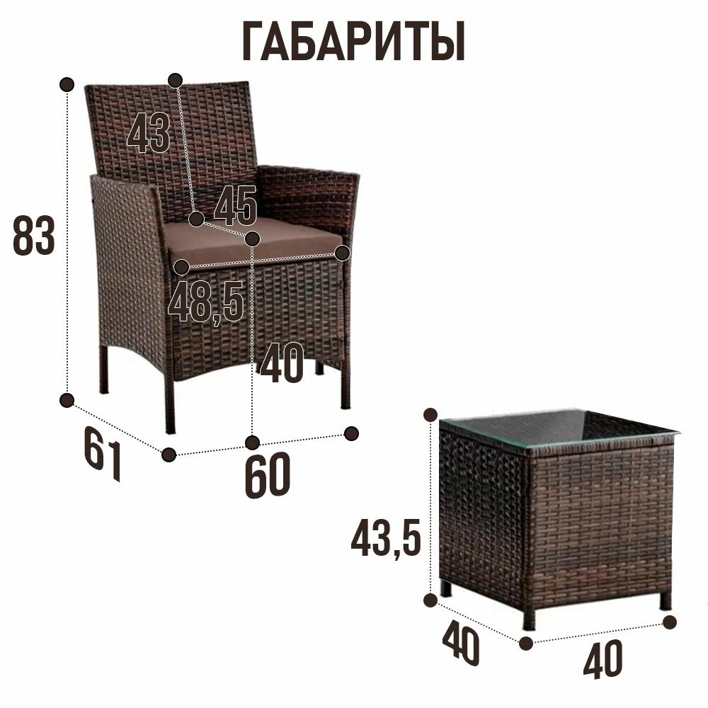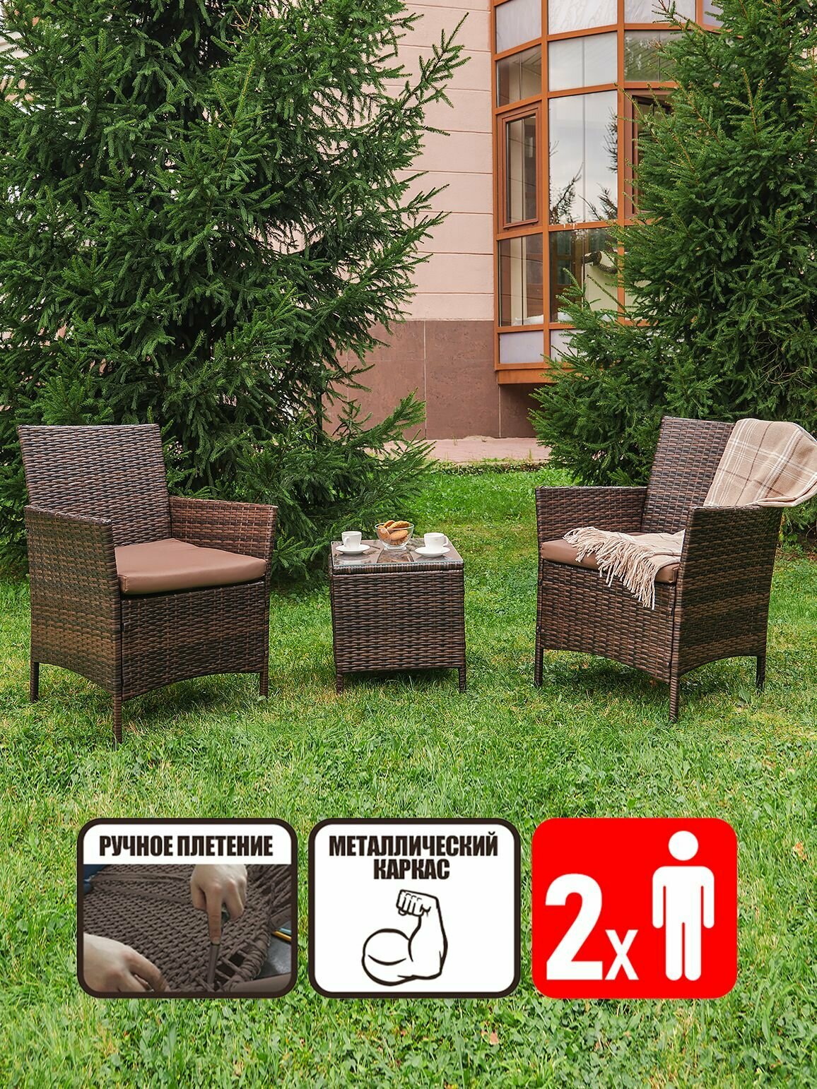 Садовая мебель для дачи Киото Дуэт комплект на 2 персоны из искусственного ротанга, шоколад интересное: