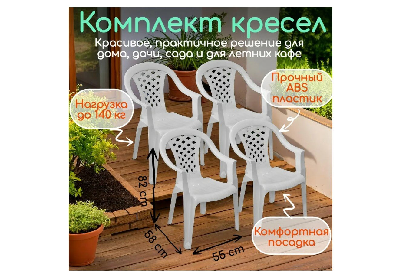 Комплект кресел садовых белые 4 шт пластик интересное: