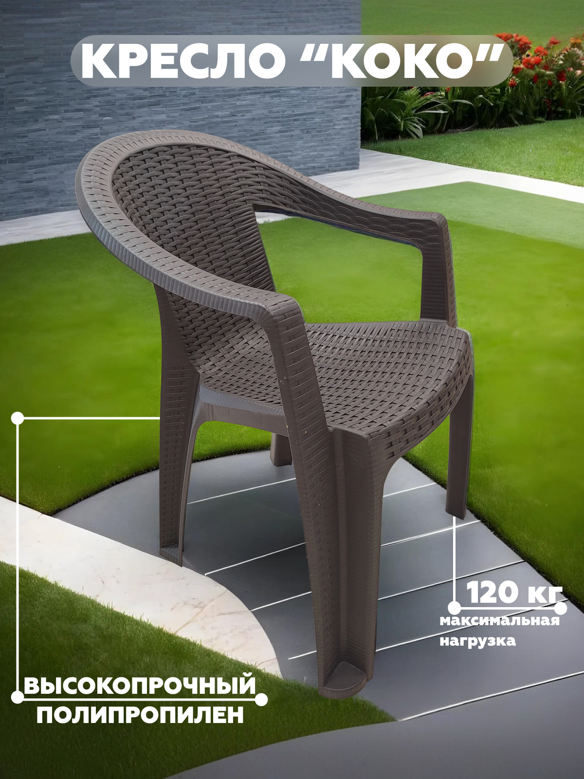 Кресло садовое Heniver КОКО 61х57х77 см, полипропилен, цвет шоколадный интересное: