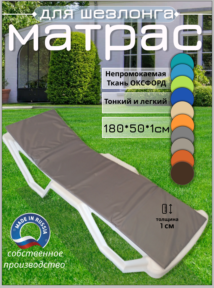 Матрас для шезлонга водонепроницаемый, 180*50*1 см, темно-бежевый, Чудо Кресло, коврик для пляжа, Оксфорд, односекционный