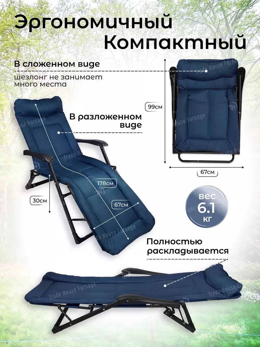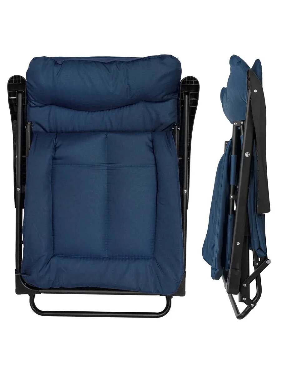 Шезлонг складной с подголовником и подлокотниками (510х1770мм, синий) WMC TOOLS WMC-FG-HY-8007B