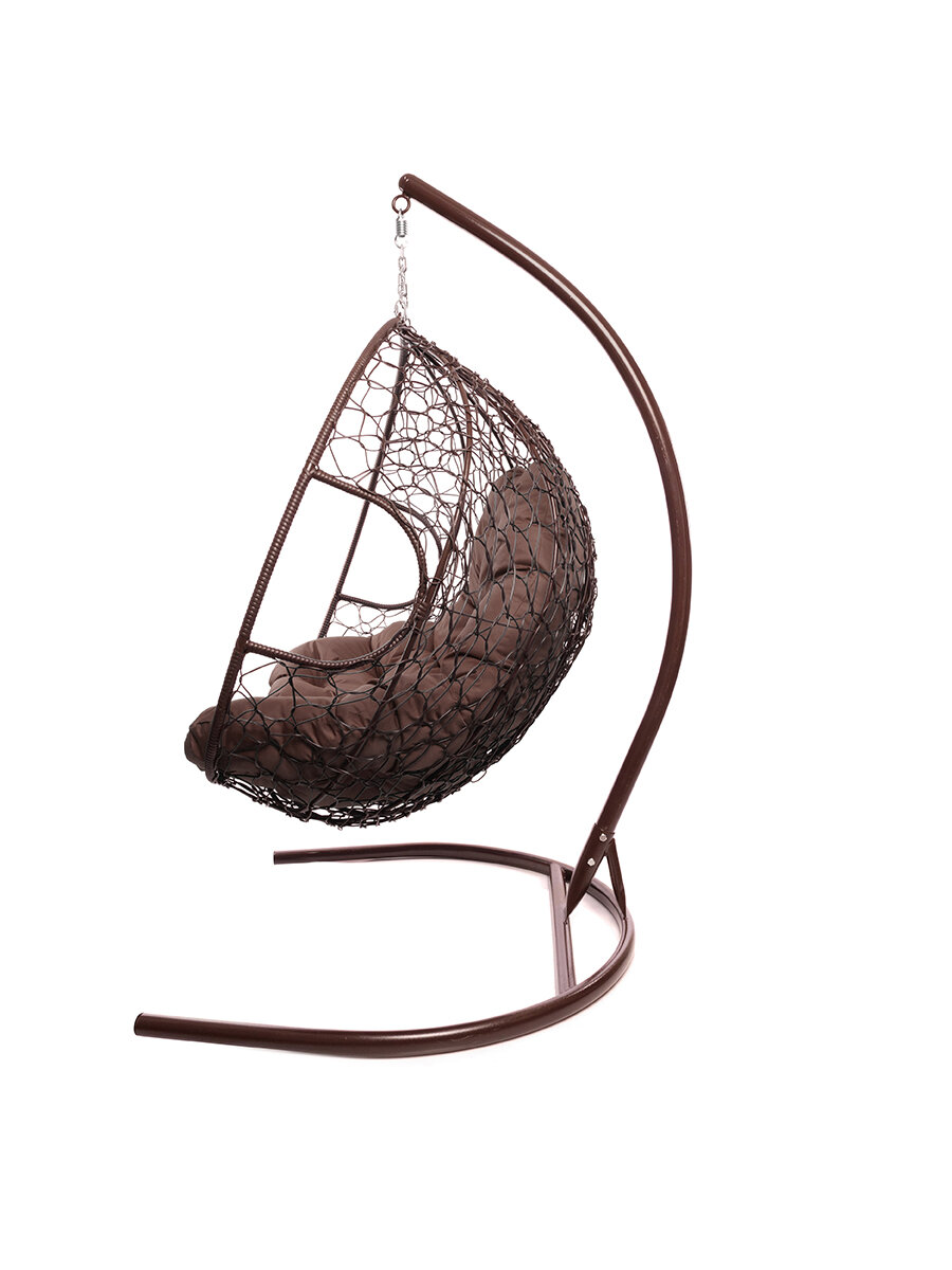 Подвесное кресло из ротанга "Для двоих" коричневое с коричневой подушкой M-GROUP
