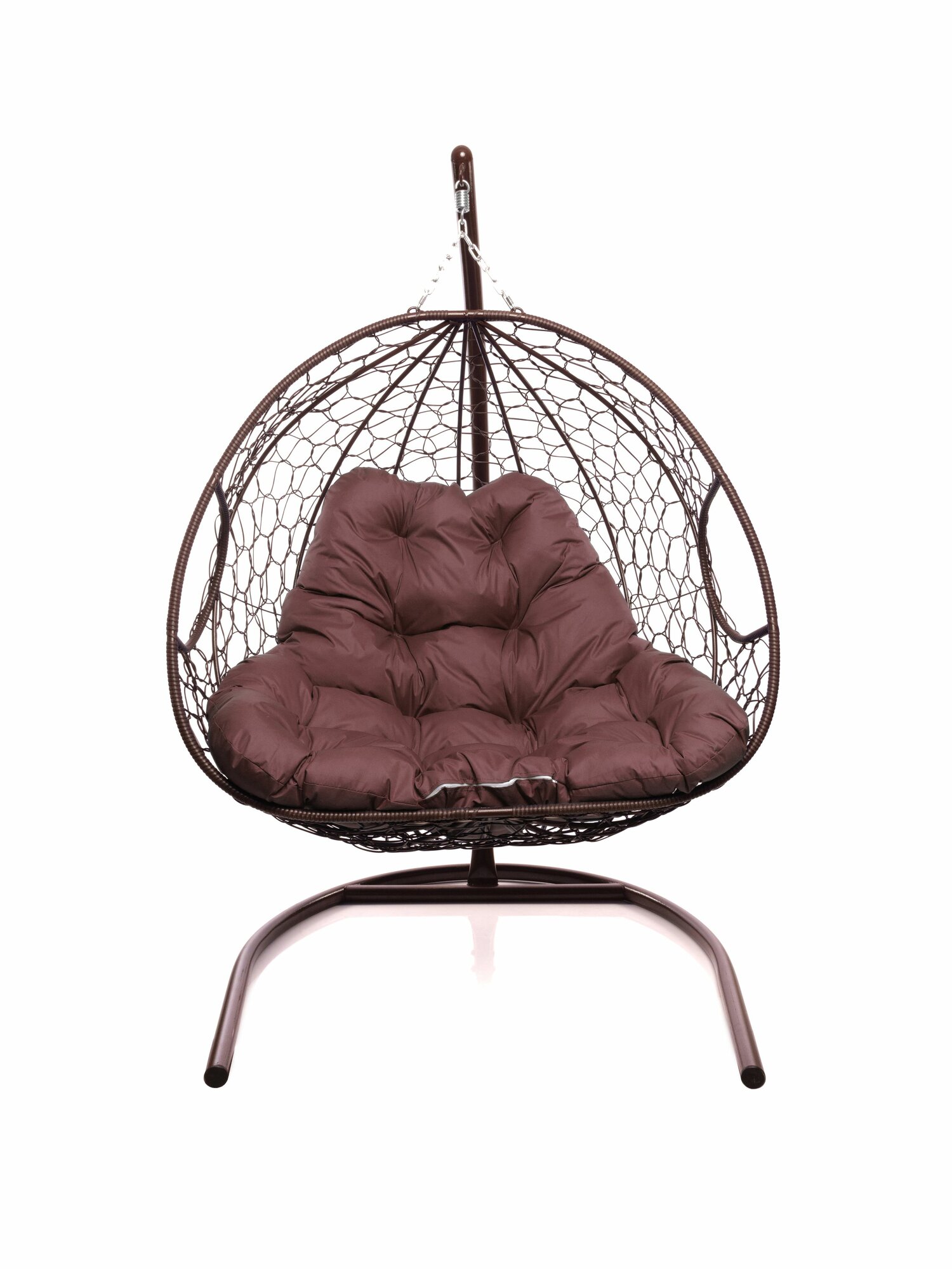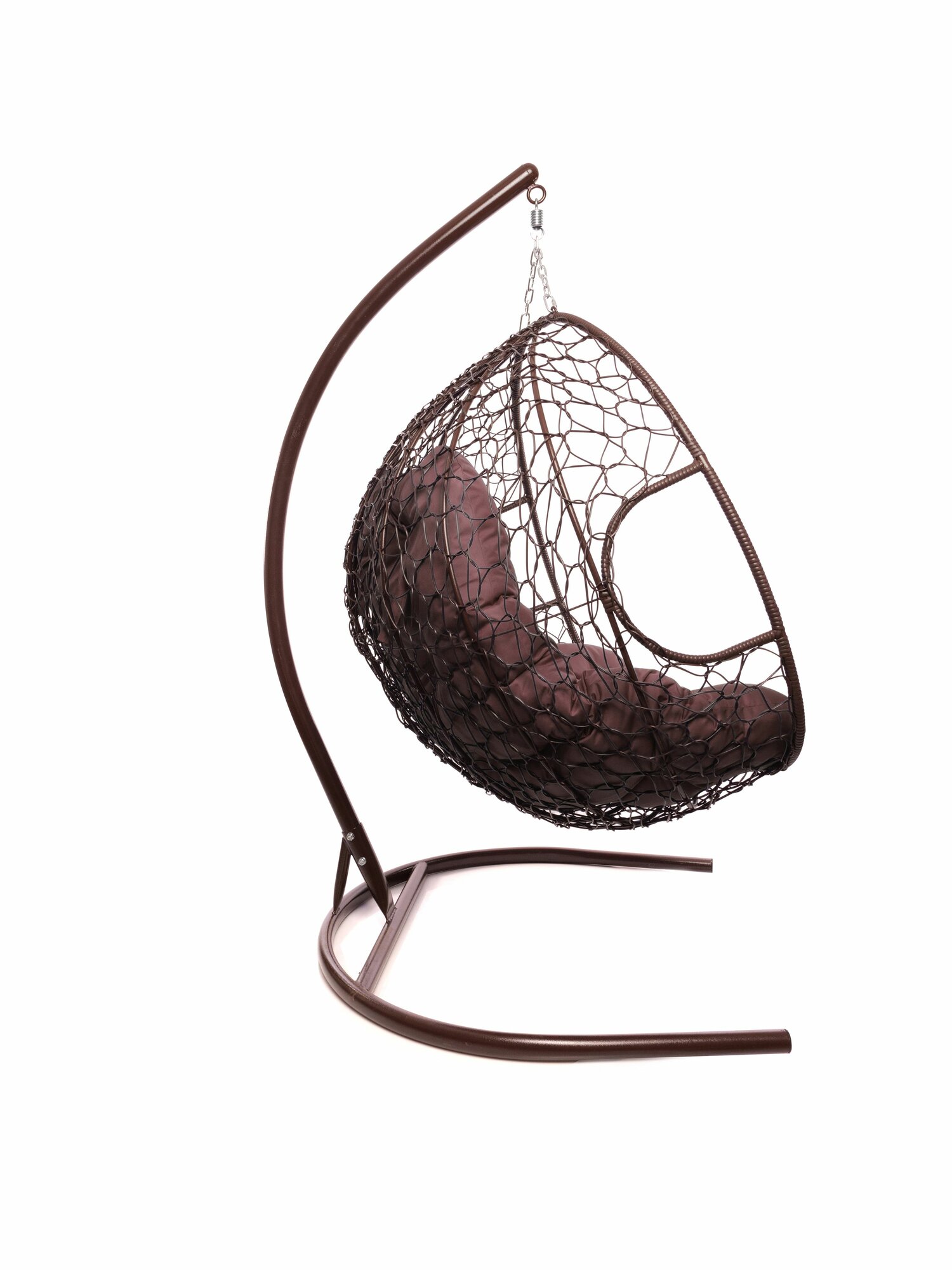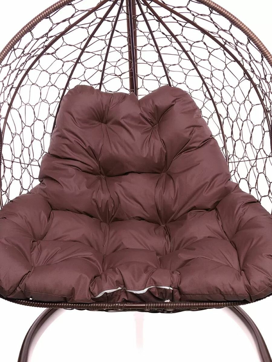 Подвесное кресло из ротанга "Для двоих" коричневое с коричневой подушкой M-GROUP