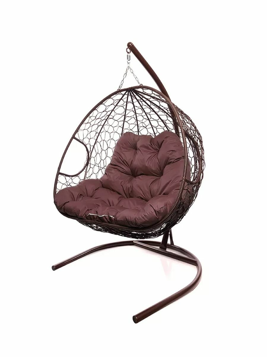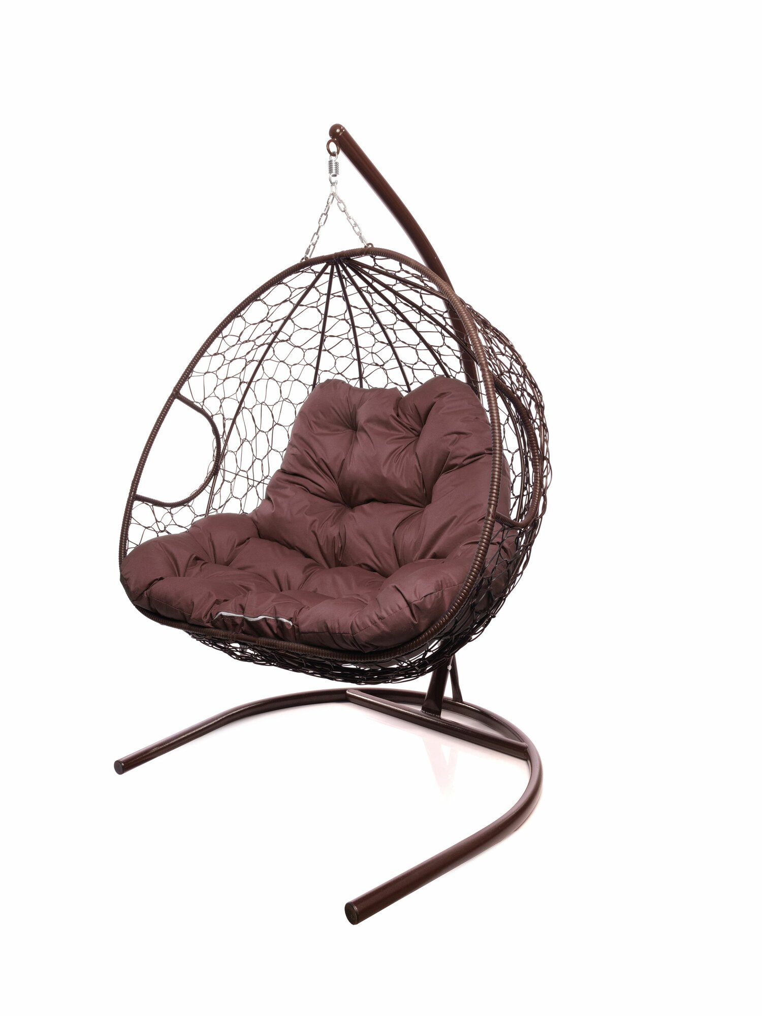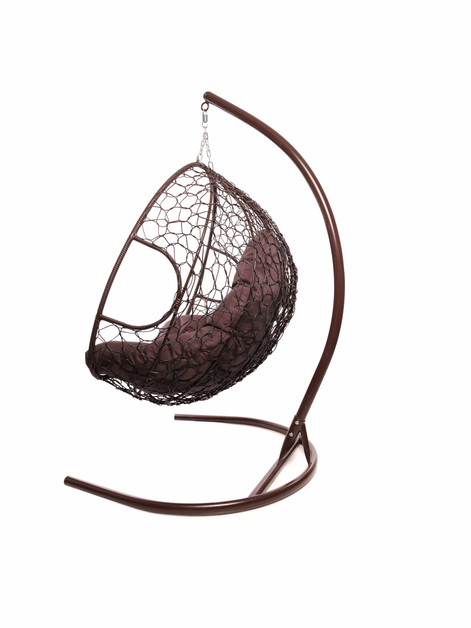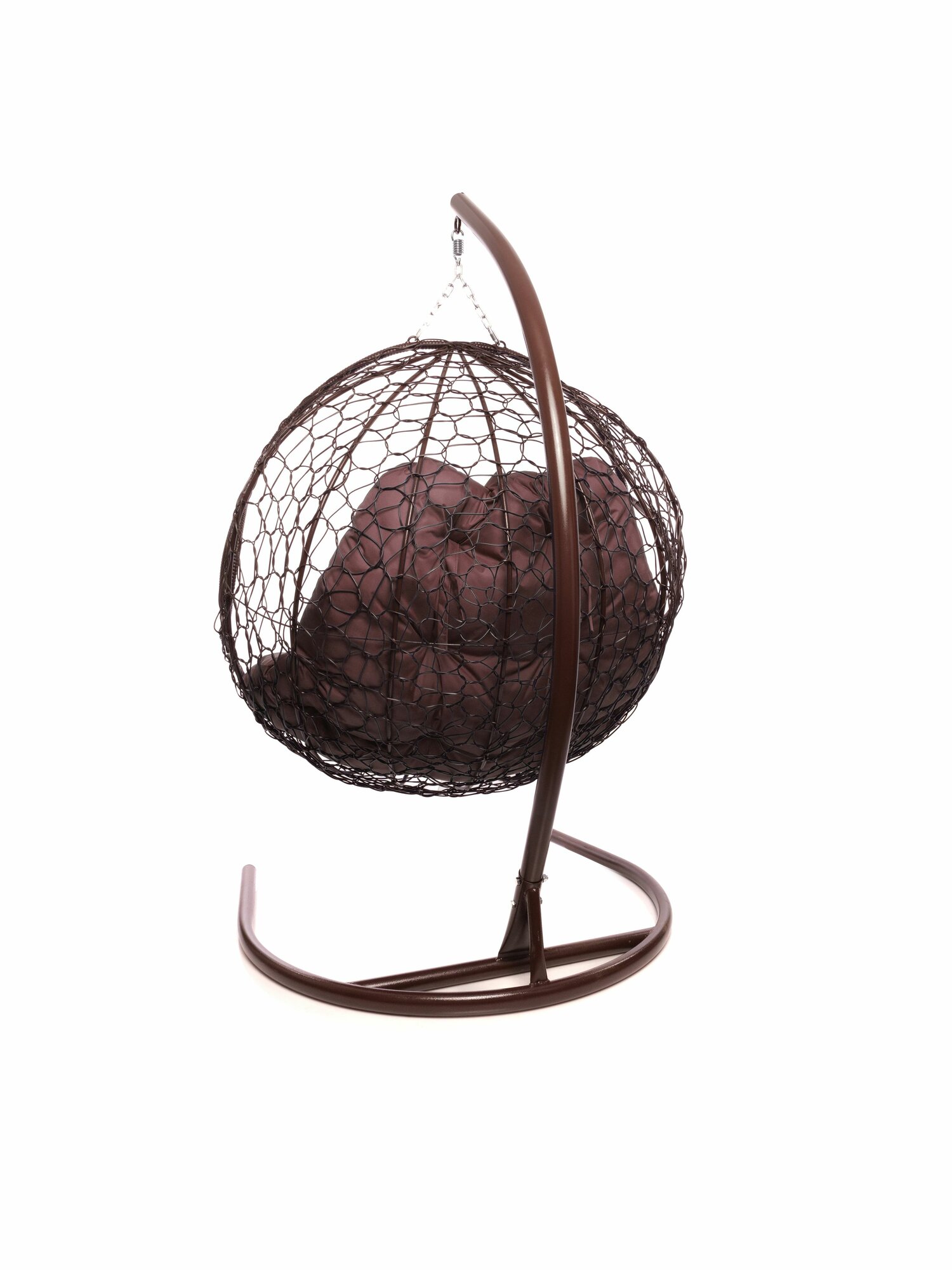 Подвесное кресло из ротанга "Для двоих" коричневое с коричневой подушкой M-GROUP