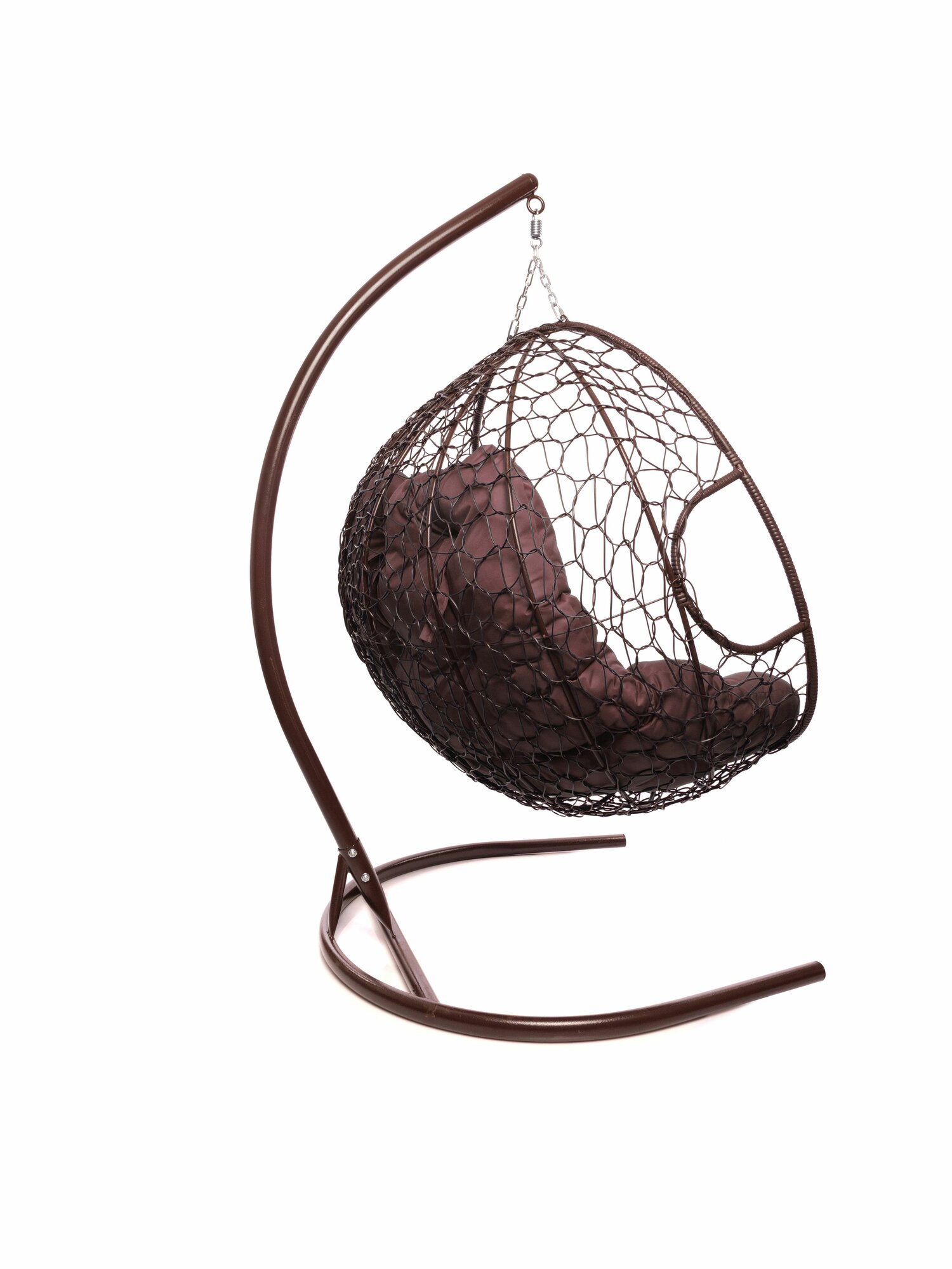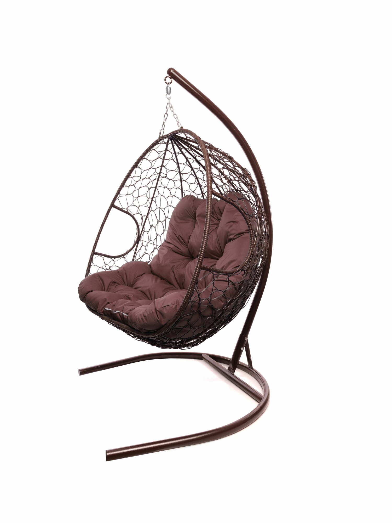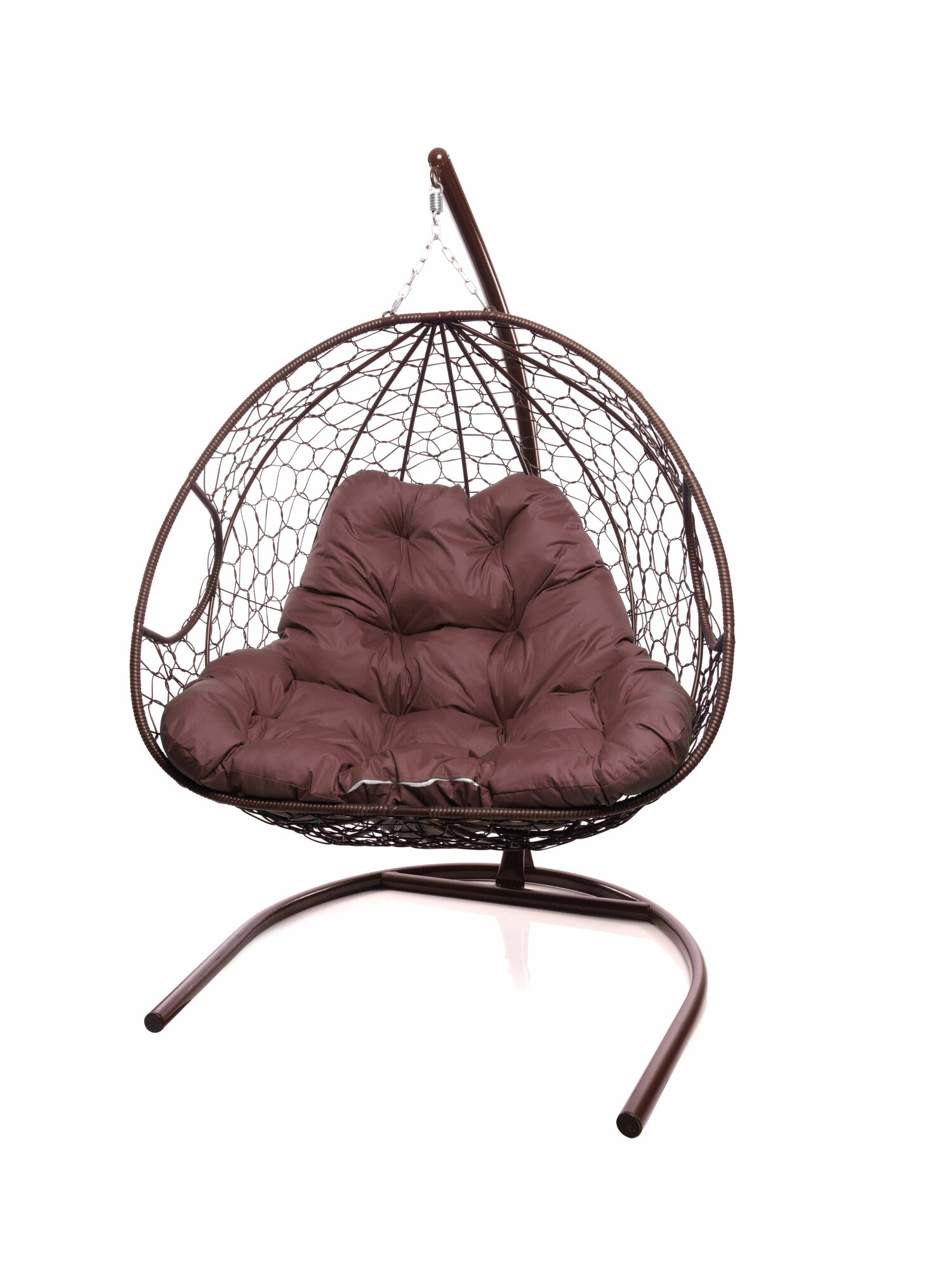 Подвесное кресло с ротангом "Для двоих" коричневое с коричневой подушкой M-GROUP