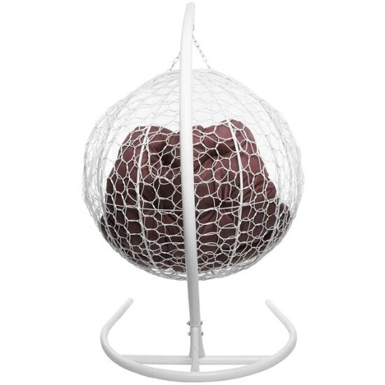 Подвесное кресло из ротанга "Для двоих" белое с коричневой подушкой M-GROUP