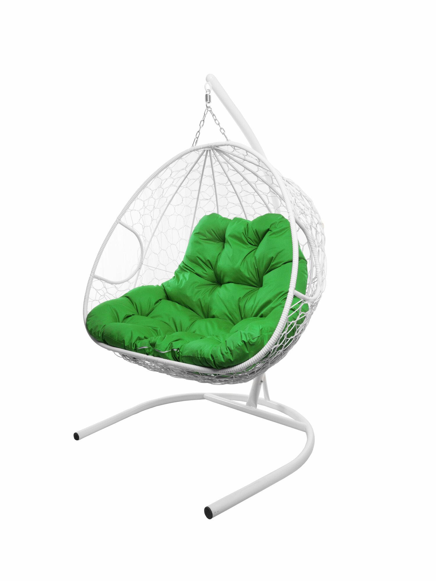 Подвесное кресло для двоих с ротангом белое, зелёная