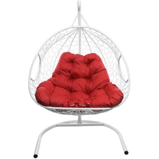 Купить Подвесное кресло кокон двухместное M-group для двоих с ротангом белое+красная подушка