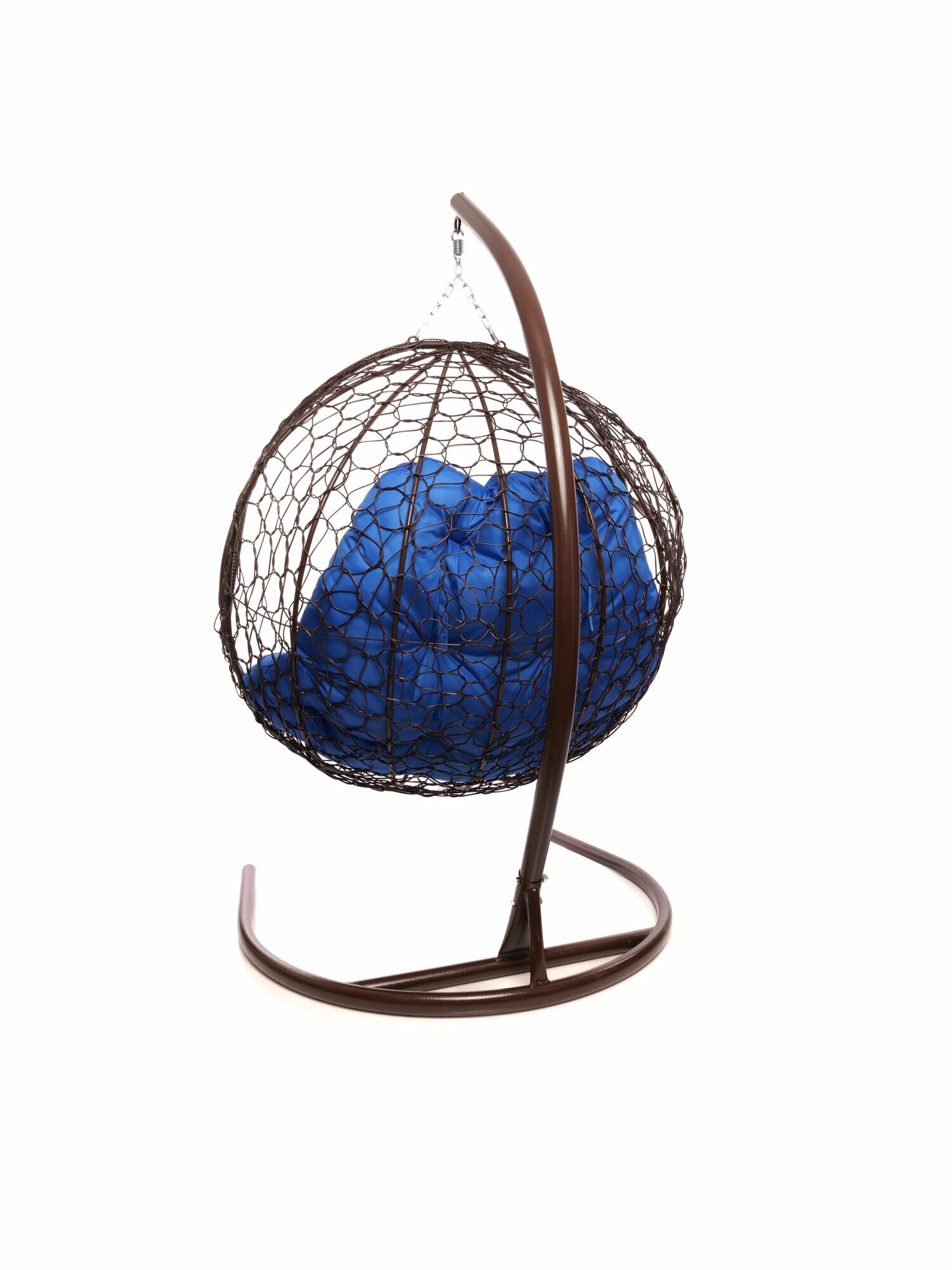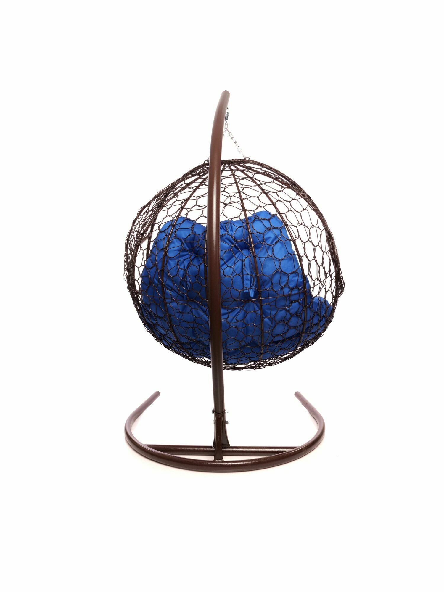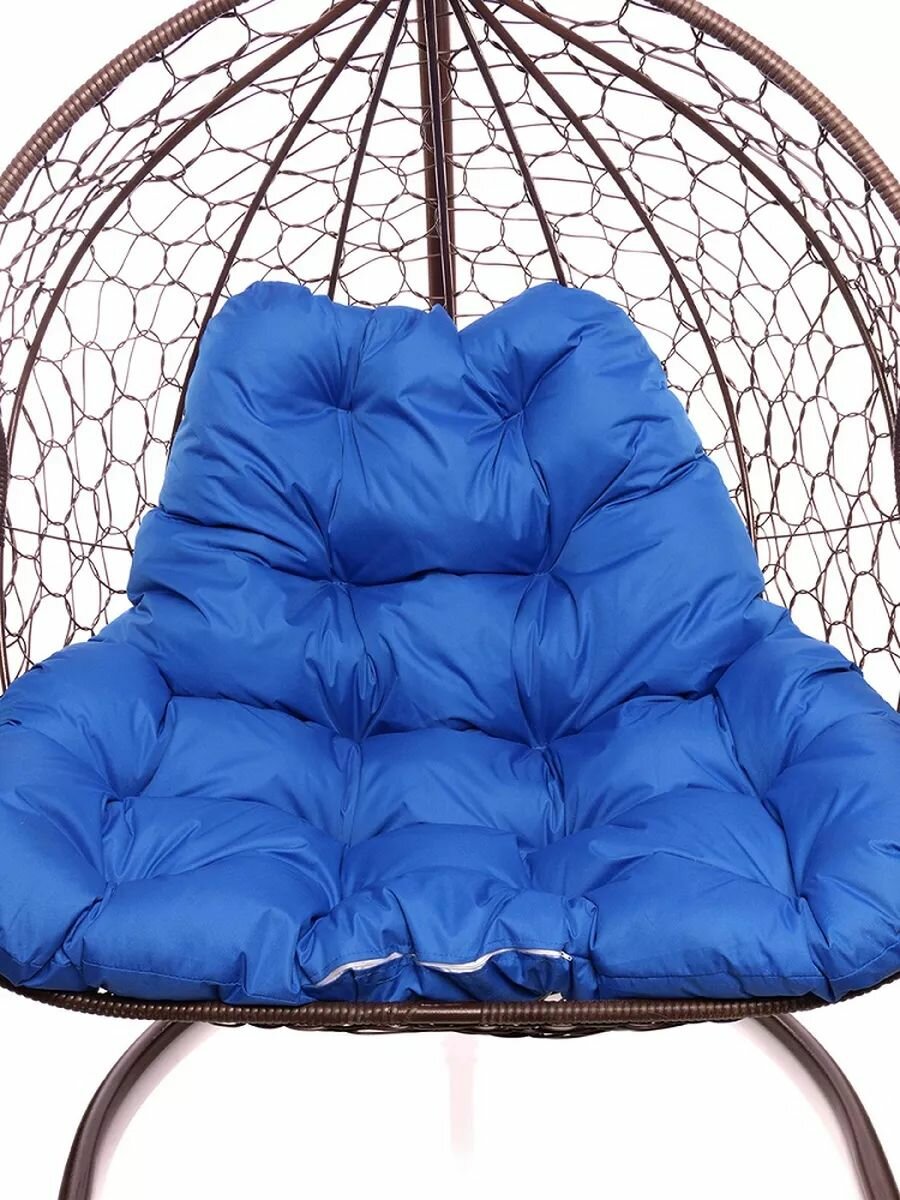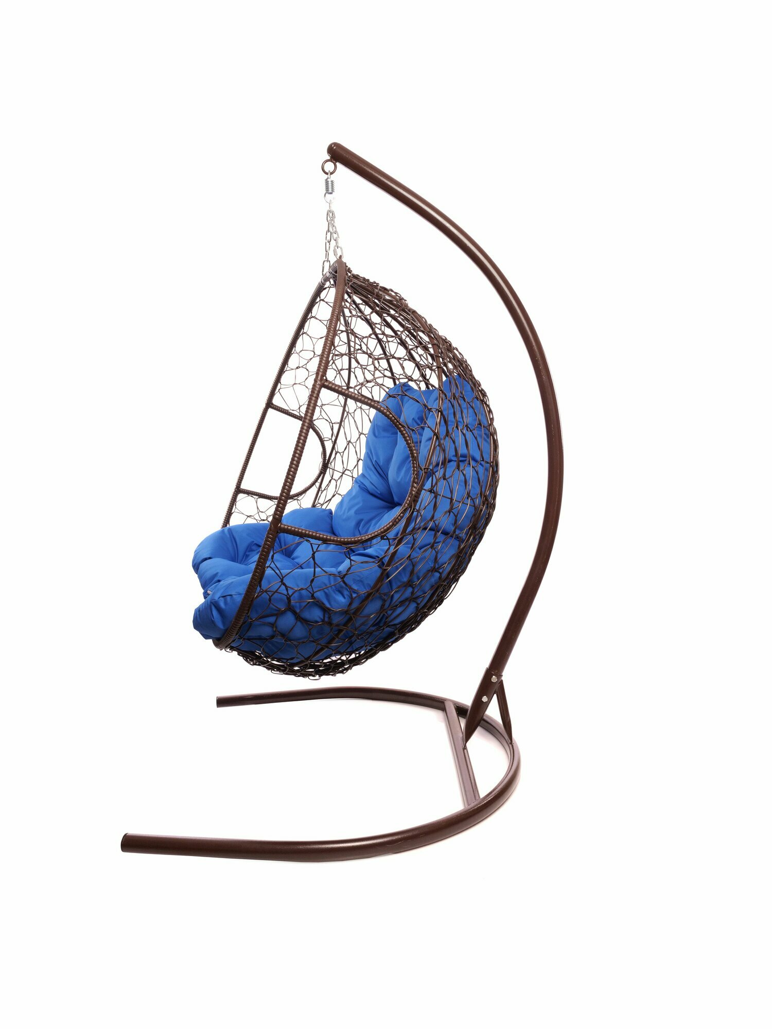 Подвесное кресло Для Двоих с ротангом Коричневое / Синяя подушка M-Group