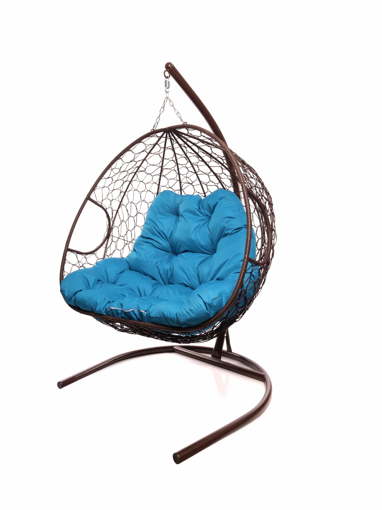 Подвесное кресло для двоих с ротангом коричневое, голубая