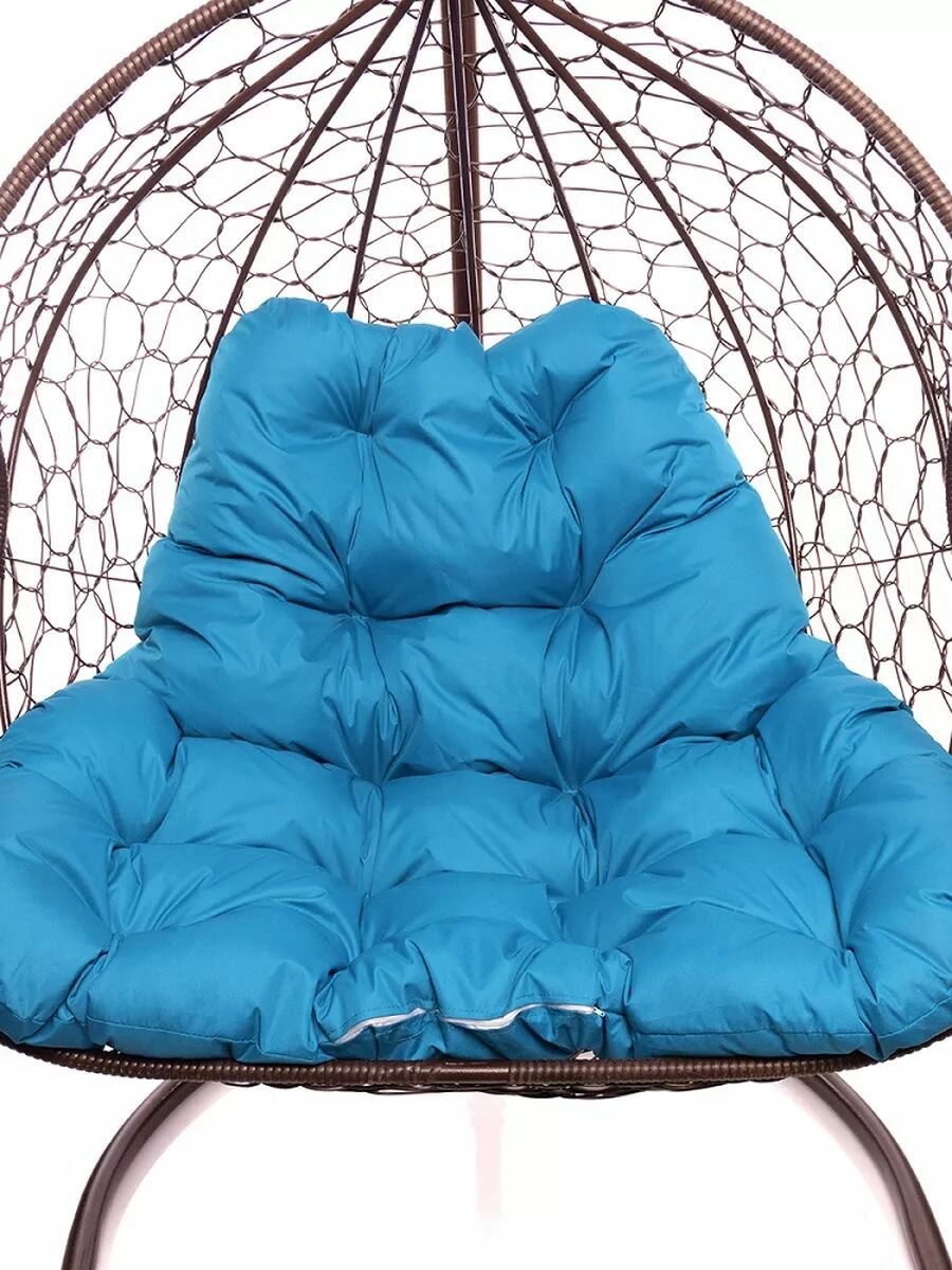 СохранитьПодвесное кресло для двоих с ротангом коричневое, голубая подушка интересное: