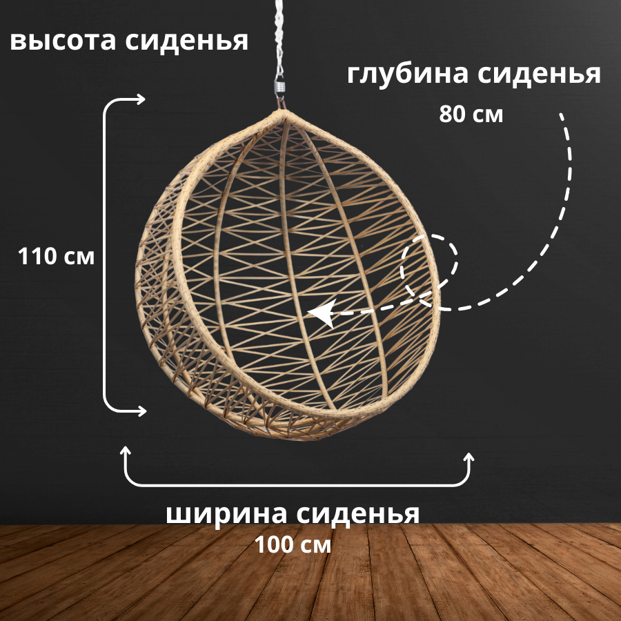 Подвесное кресло бабочки, 100*78*110, бежевое,графитовая подушка