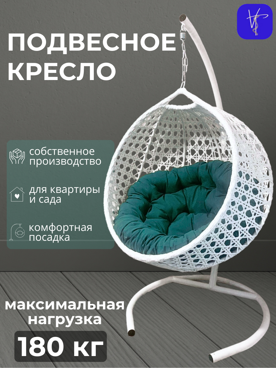 Подвесное кресло кокон,110*78*100см,румбик, белый , зеленая подушка