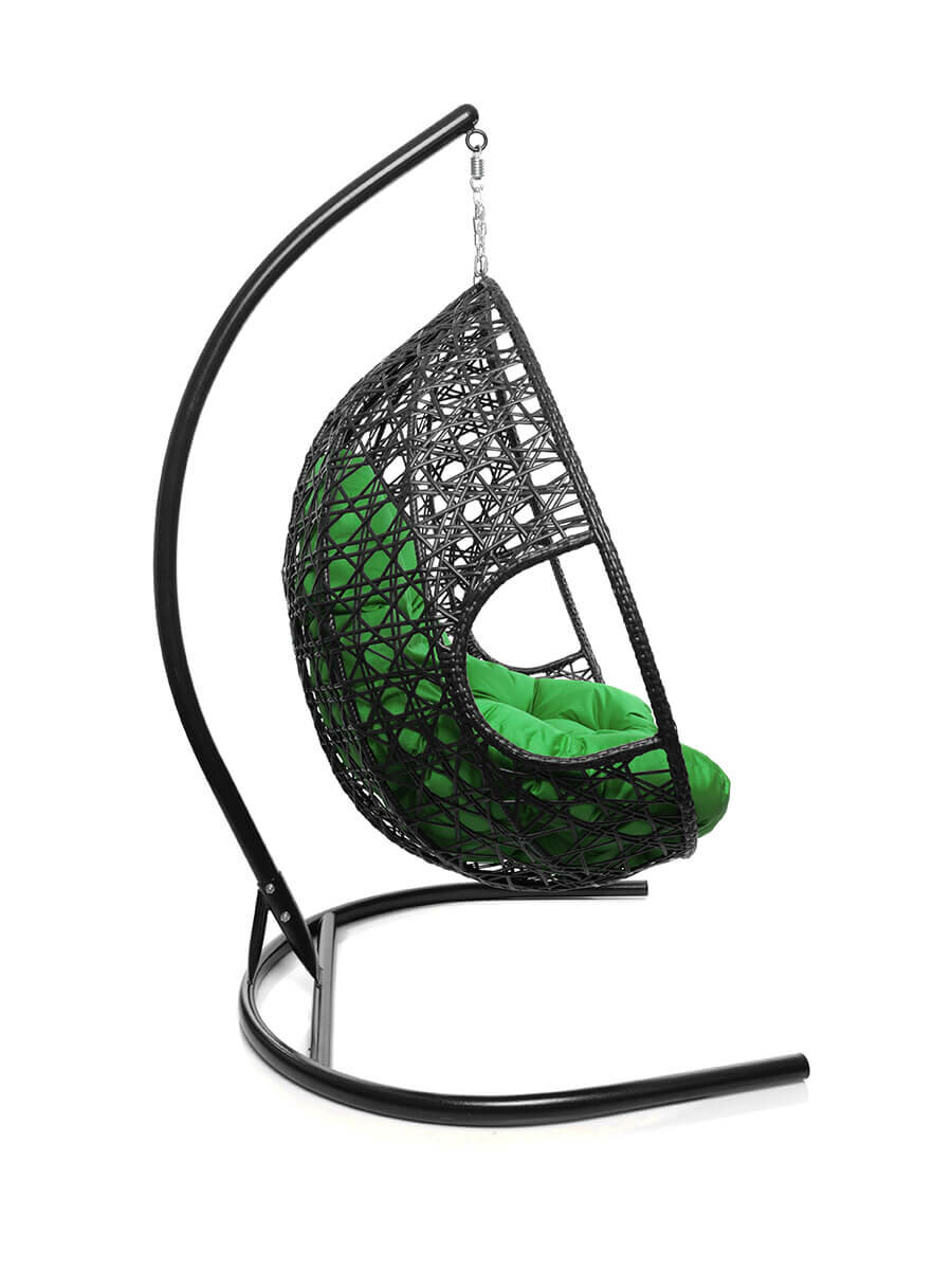Подвесное кресло капля Люкс чёрное, зелёная подушка