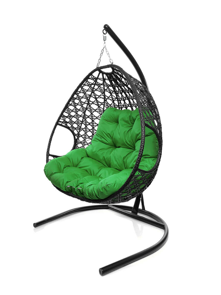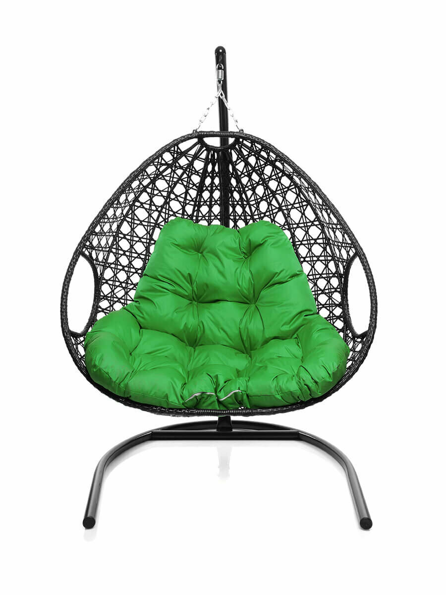Купить Подвесное кресло с ротангом "Для двоих Люкс" черное с зеленой подушкой M-GROUP