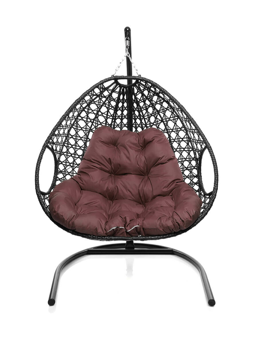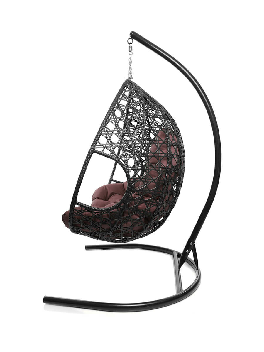 Подвесное кресло капля Люкс чёрное, коричневая подушка
