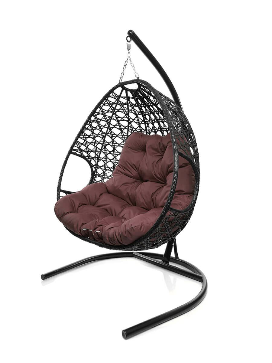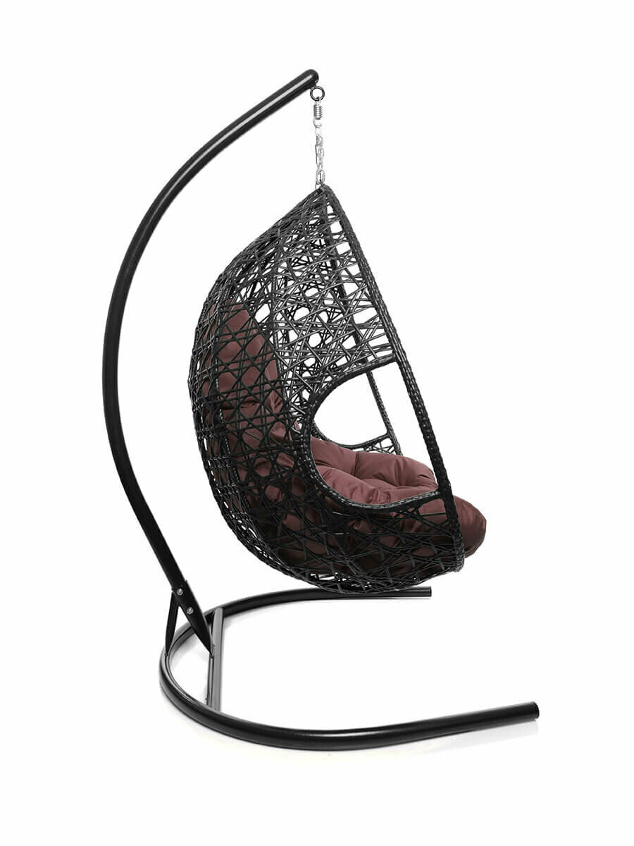 Подвесное кресло капля Люкс чёрное, бордовая подушка