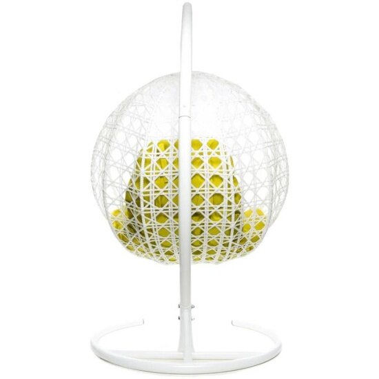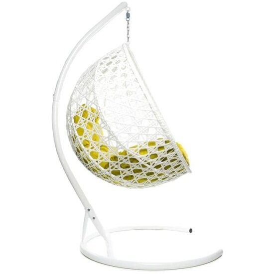 Подвесное кресло из ротанга "круг люкс" с ротангом белое, жёлтая подушка