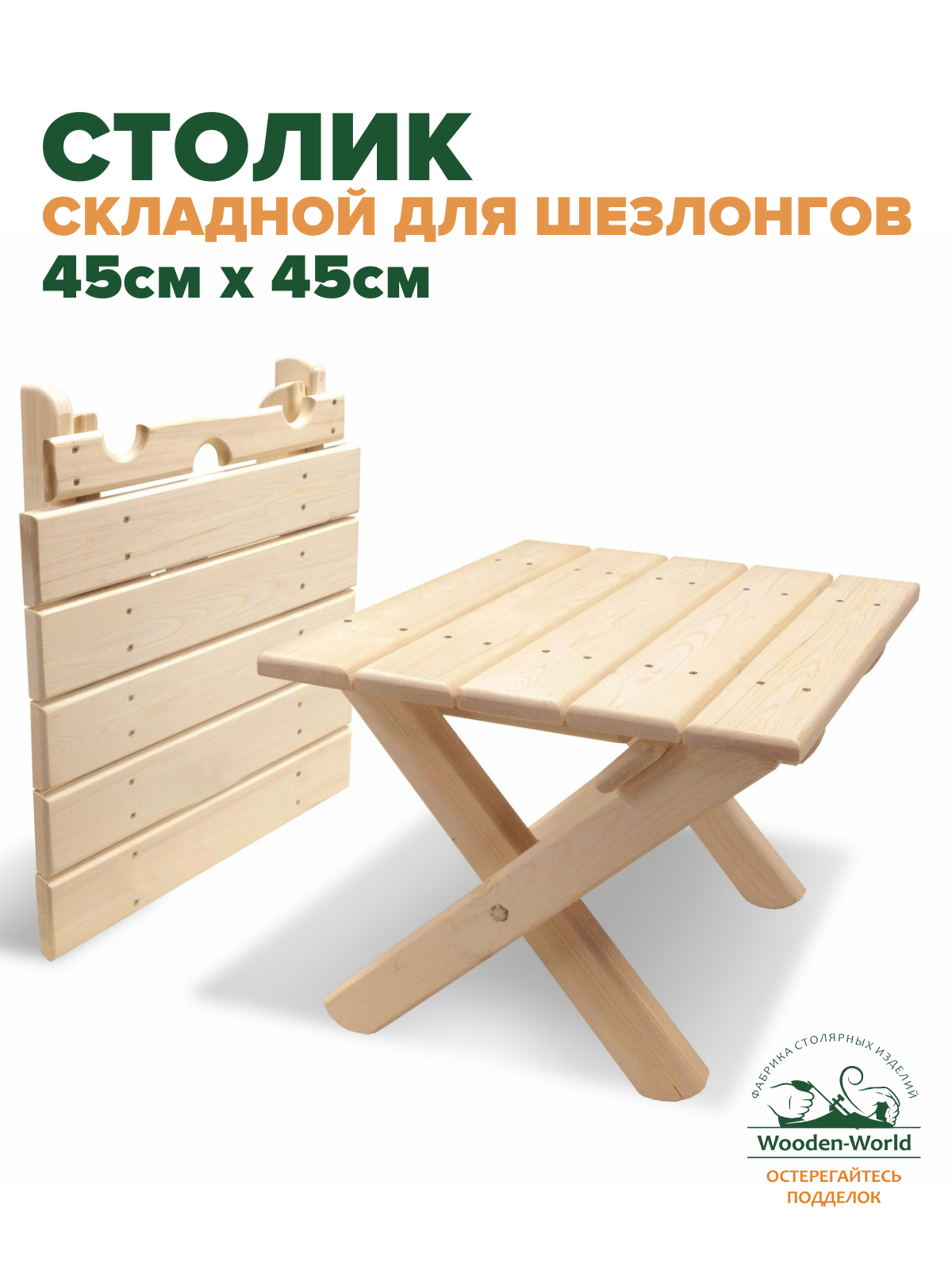Купить Столик складной деревянный для шезлонгов, стол садовый из массива дерева низкий