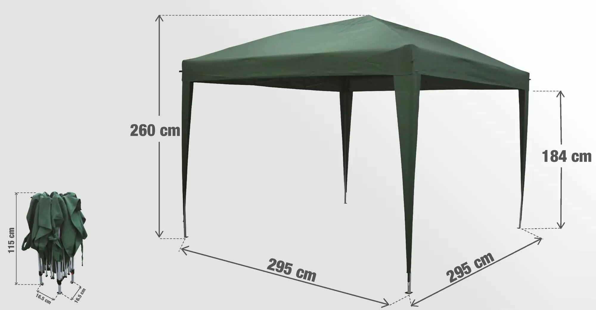 Купить Тент садовый 295x295x260 см, цвет зеленый - защищает ваших гостей от солнца, ветра и дождя. Благодаря большой площади покрытия вы можете легко установить под ним стол и стулья.