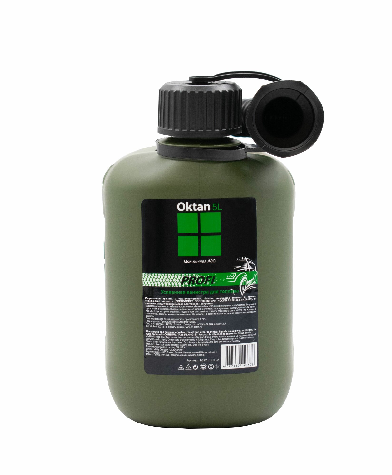 KGA1-01-07 Канистра ГСМ PROFI, пластиковая, темно-зеленая, 5 л, Oktan