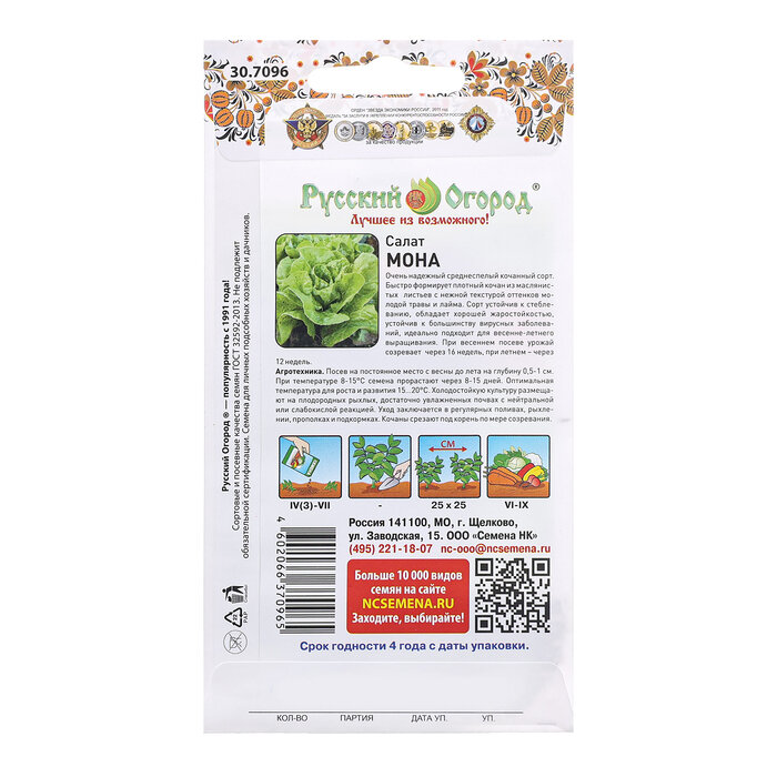 Семена Салат Московский парниковый листовой 1г Ранние (Поиск) Белый пакет