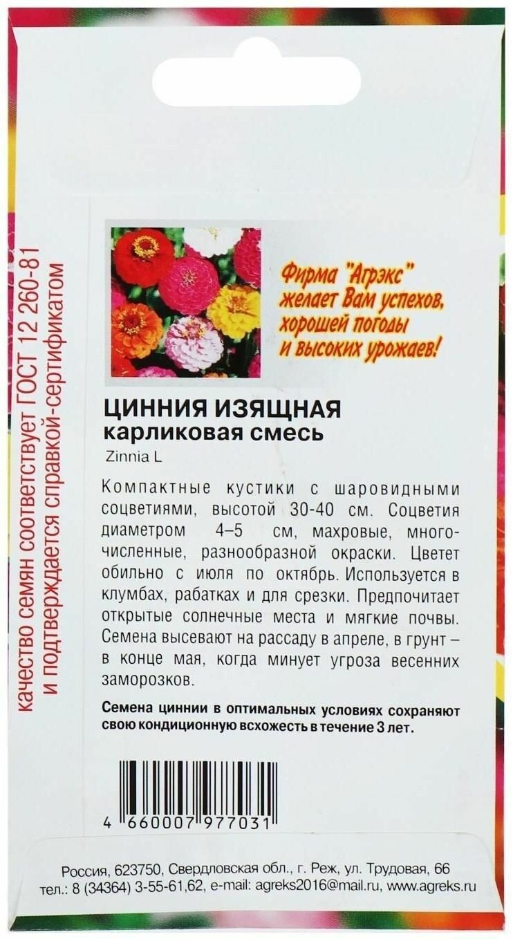 Семена цветов Цинния изящная карликовая смесь, 0,2-0,3 г интересное: