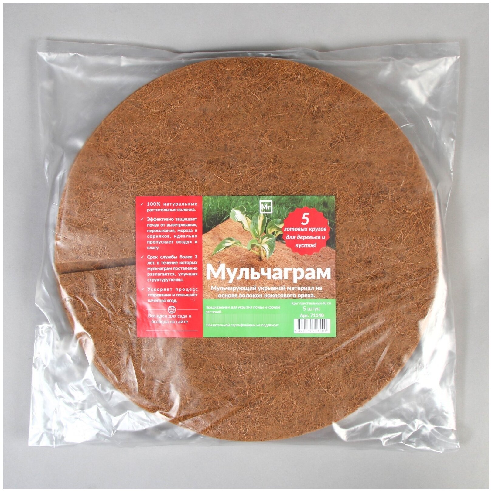 Круг приствольный кокосовый «Мульчаграм» D=60 см, упаковка - 5 шт
