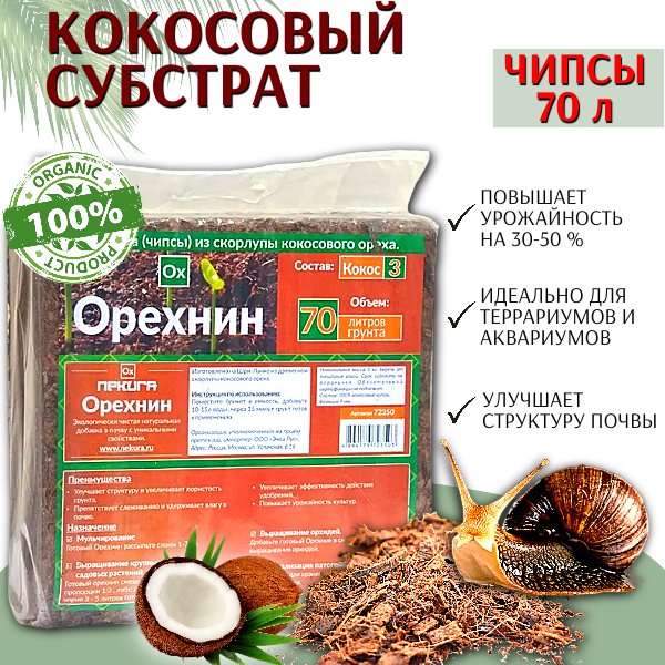 Купить Кокосовый субстрат Орехнин-3 брикет 70 л Энви Рус 72350