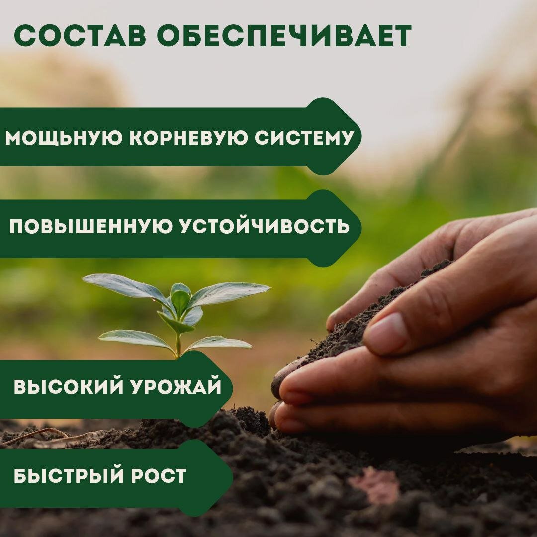 | Дополнительная информация | улучшает всхожесть семян, приживаемость рассады; повышает урожайность и качество овощей и плодов; обеспечивает ускорение роста, развития и созревания овощей и корнеплодов; способствует получению высокого урожая; улучшает вкусовые и питательные свойства продукции; восстанавливает плодородие и естественный биоценоз почв |