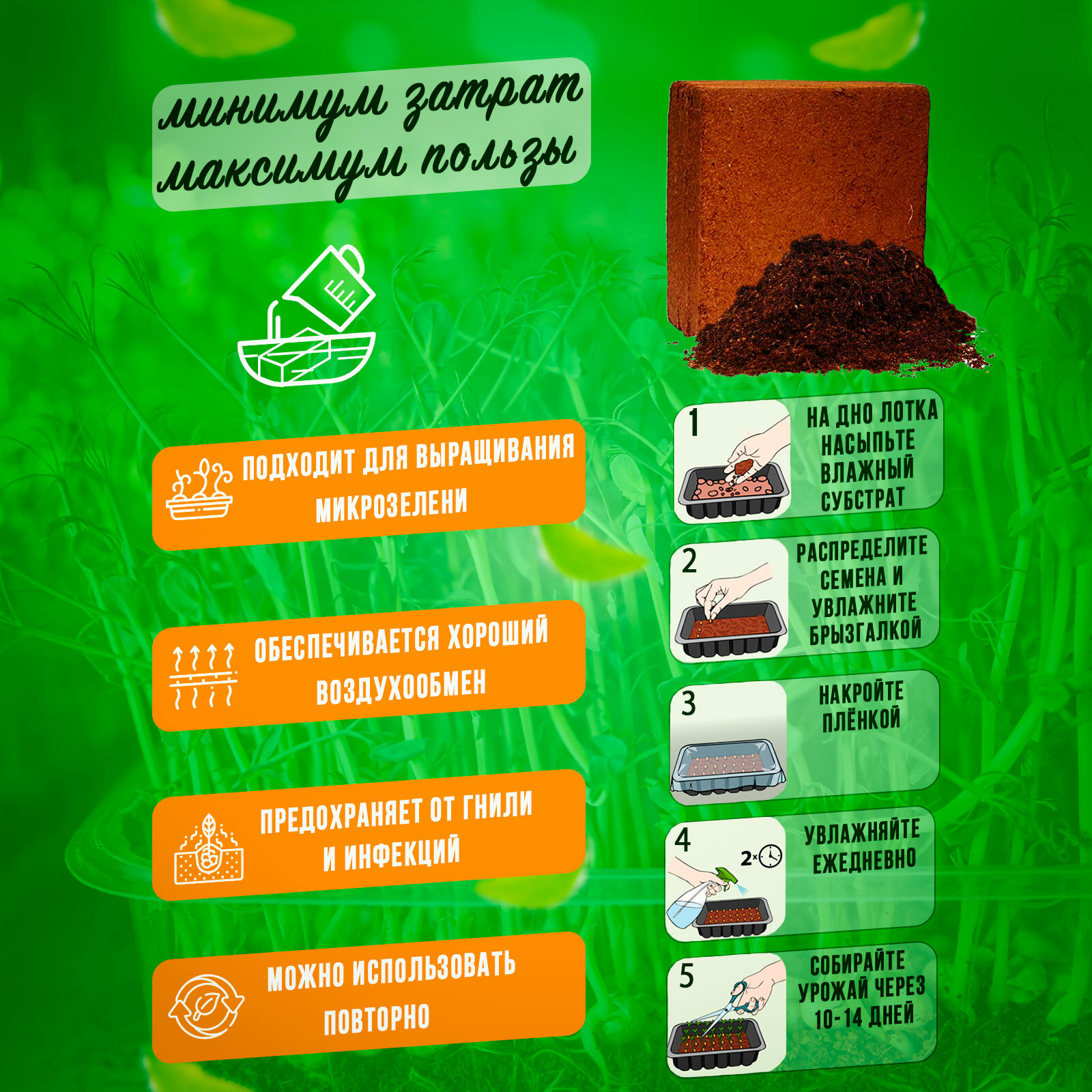 Кокосовый субстрат универсальный для грунта и цветов брикет 70 литров интересное:
