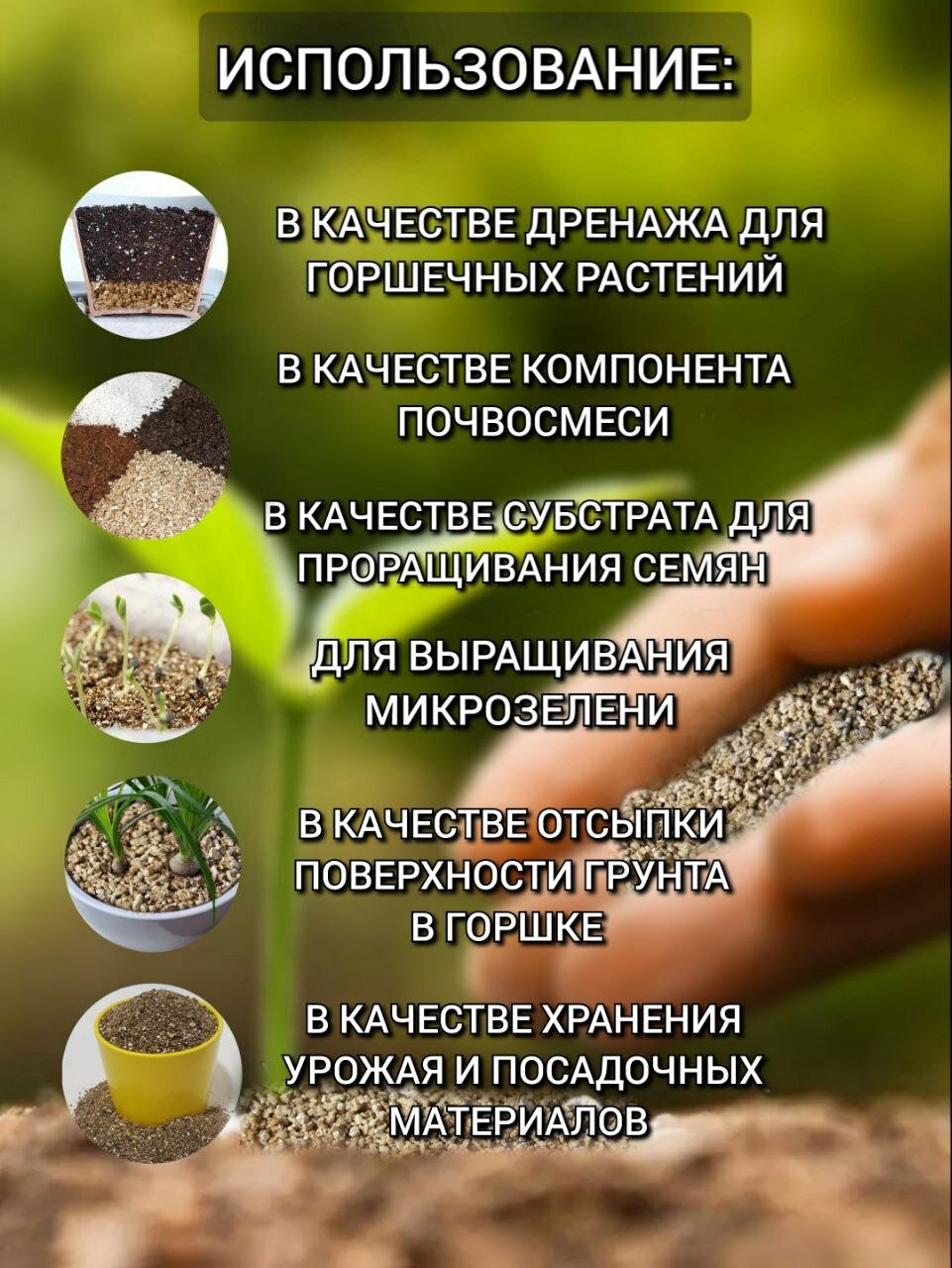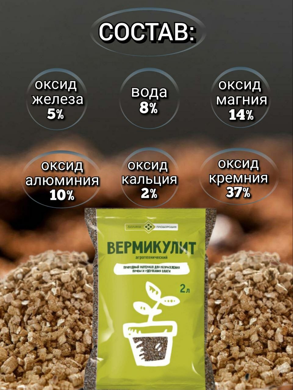 Вермикулит 2 л Долина плодородия разрыхлитель почвы почвоулучшитель дренаж для проращивания семян рассады микрозелени укоренения черенков влагоудерживающий агровермикулит
