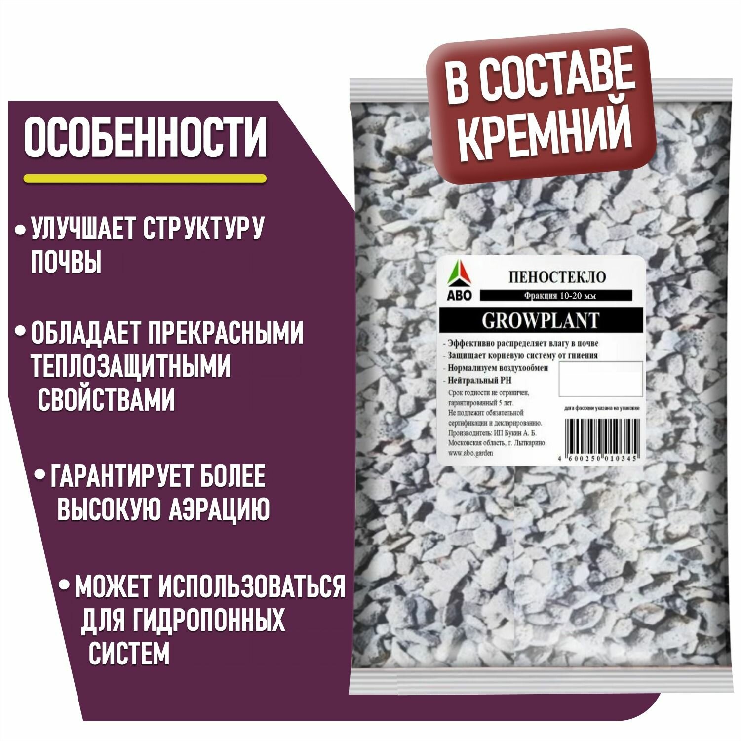 GrowPlant 5 литров фракция 10-20 (Гроуплант пеностекло) субстрат для растений