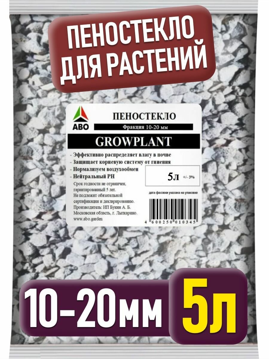 Купить Пеностекло для комнатных растений, орхидей, дренаж для цветов, суккулентов, рассады, фикуса, замиокулькаса фракция 10 - 20 мм. GROWPLANT 5 л.