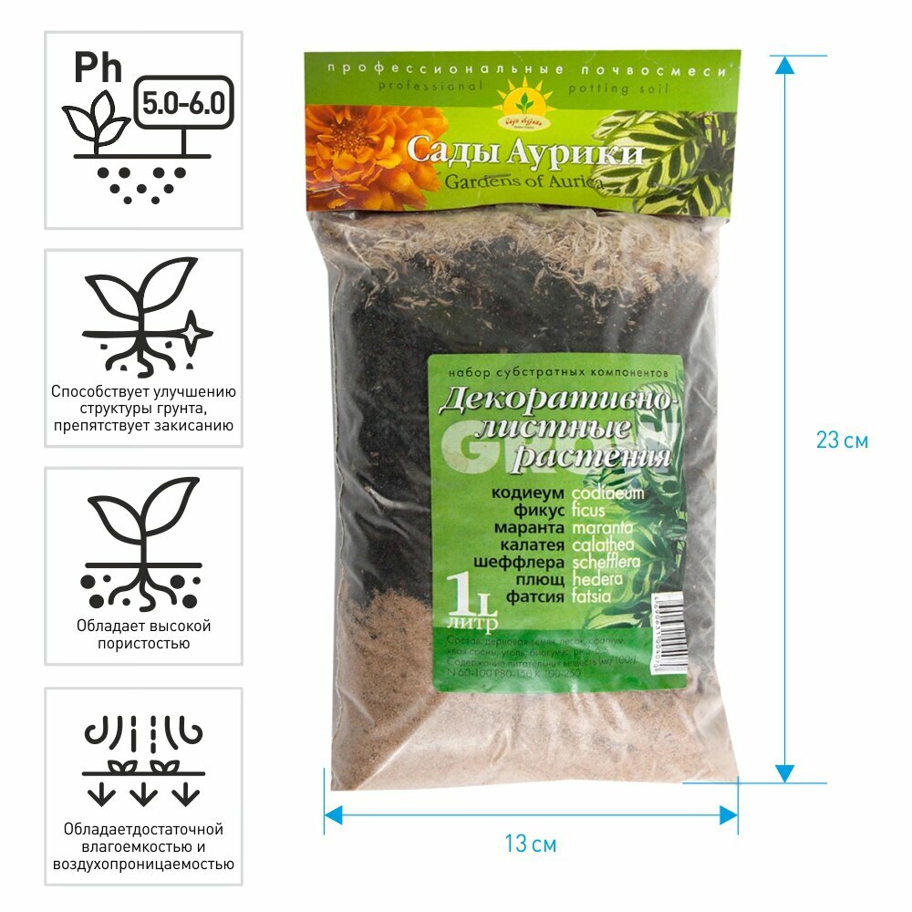 Купить Декоративно-лиственные субстрат "Сады Аурики" Академия Цветоводства, 1 л