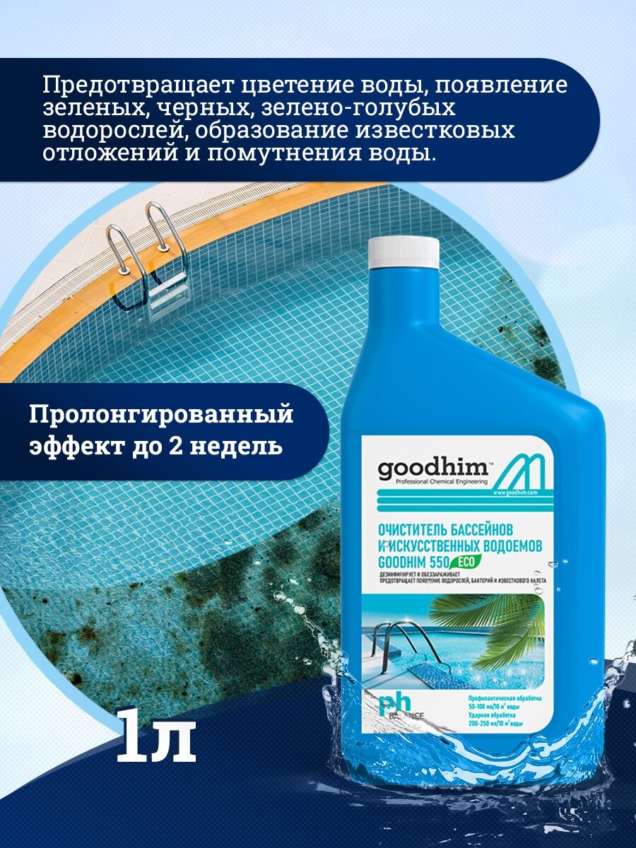 Очиститель бассейнов и искусственных водоемов, GOODHIM 550 ECO без хлора, 1 л. 20441