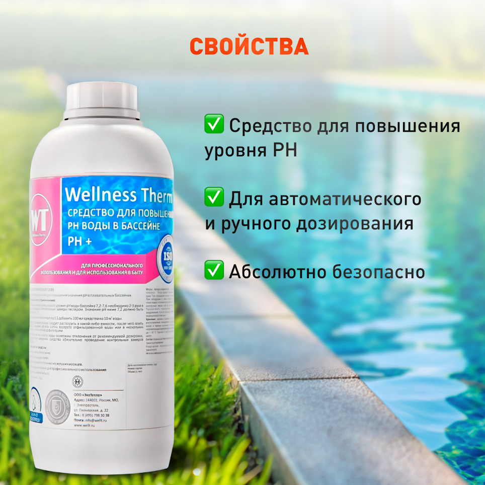 Средство «Wellness Therm» для повышения PH воды в бассейне (PH +) 20 литров