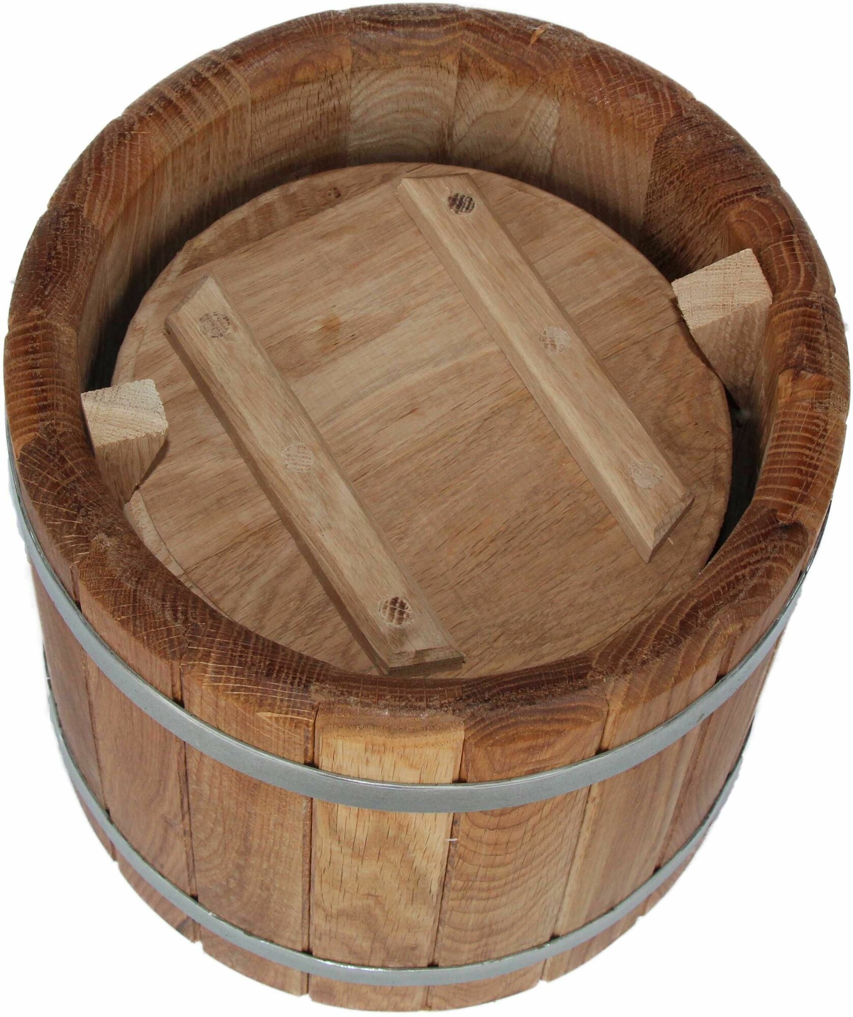 Кадка дубовая 6 литров (гнет, распорки для гнета) оцинкованный обруч