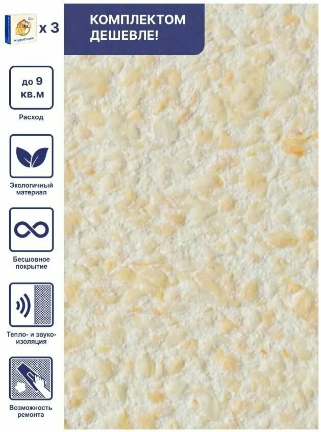 Жидкие обои Silk Plaster Рельеф 323, комплект 3 шт (до 9 кв.м) желтый