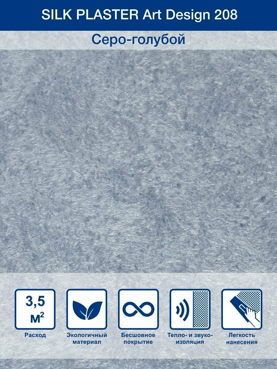СохранитьЖидкие обои Silk Plaster Арт Дизайн 208 шелк, комплект 6шт (до 21кв. м), серо - голубой интересное: