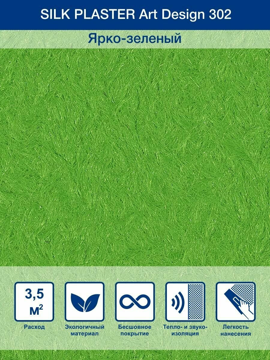 СохранитьЖидкие обои Silk Plaster Арт Дизайн 302 шелк, комплект 6шт (до 21кв. м) сочная трава интересное: