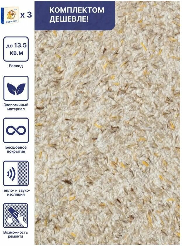 СохранитьЖидкие обои Silk Plaster Стандарт 027, комплект 3 шт (до 13,5 кв. м) светло-коричневый интересное: