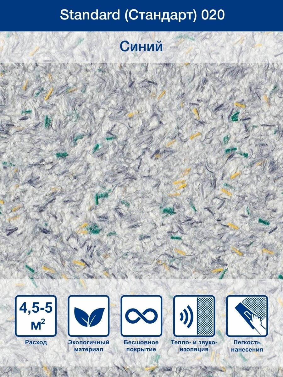 СохранитьЖидкие обои Silk Plaster Стандарт 020, комплект 3 шт (до 13,5 кв. м) синий с серым интересное: