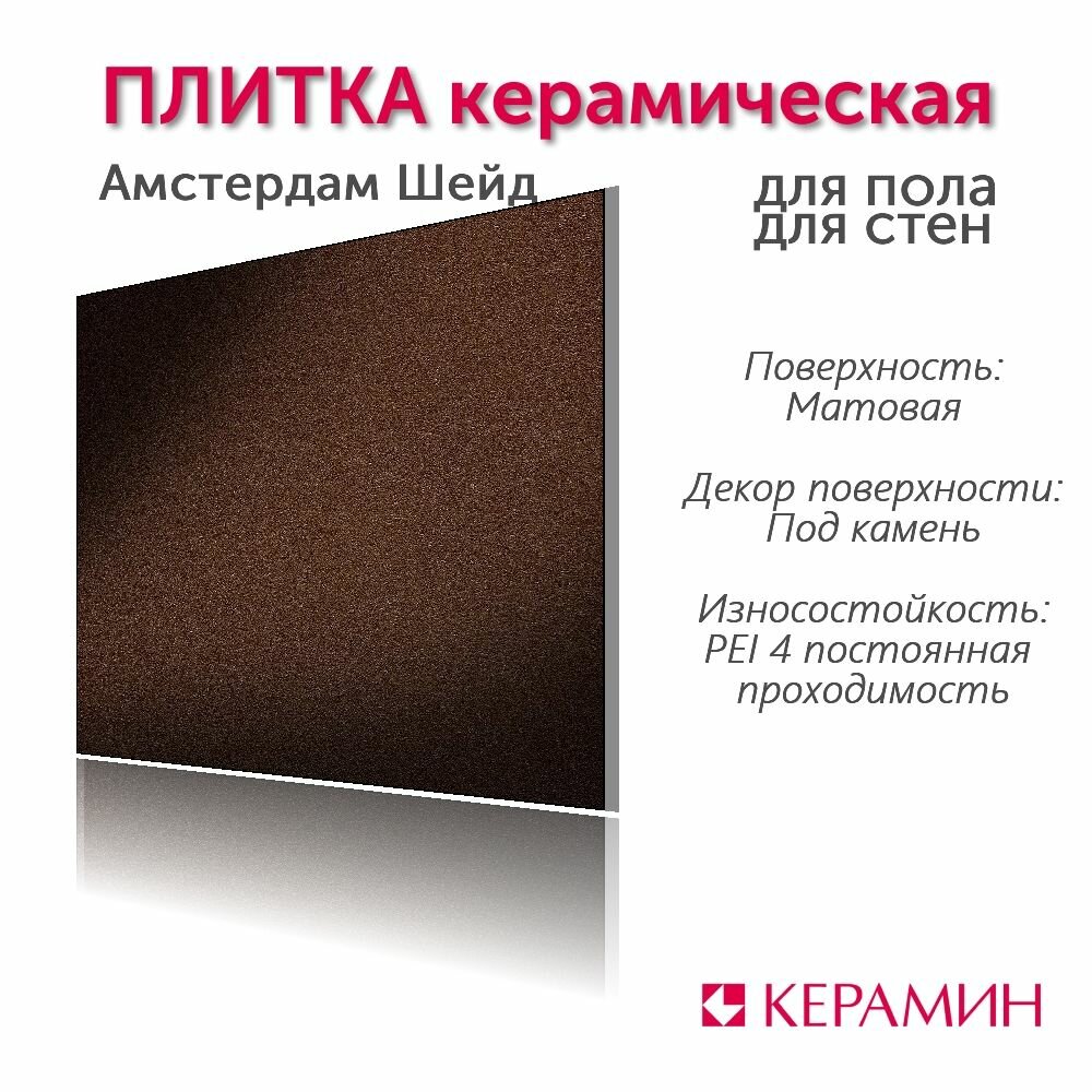 Керамин Амстердам 4 керамогранит 298х298х8мм коричневый (15шт) (1,33 кв. м.) / керамин Амстердам 4 керамогранит неполированный 298х298х8мм коричневый (