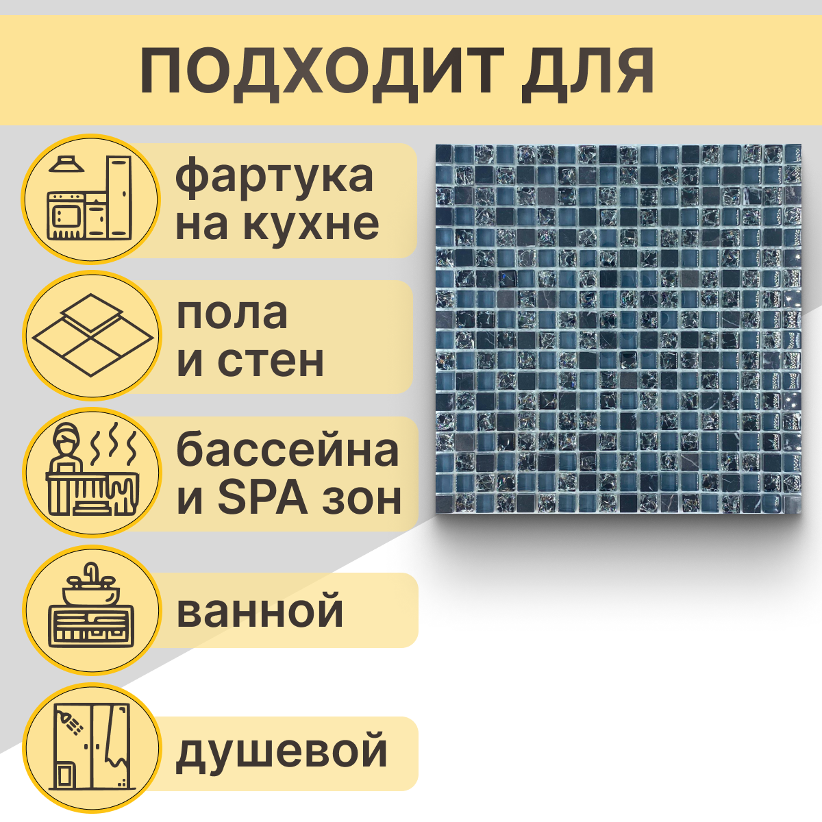 Мозаика Natural STP-BL014 из глянцевого стекла размер 31.5х31.5 см чип 25x25 мм толщ. 5 мм площадь 0.099 м2 на сетке