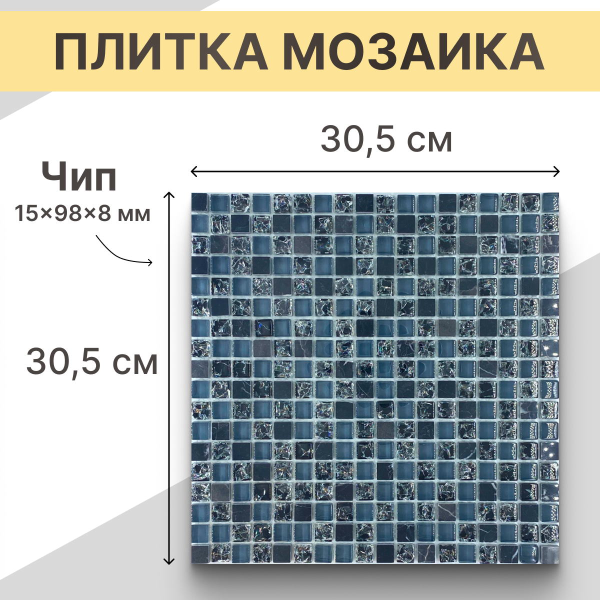 мозаика стеклянная NS mosaic No-237 305х305 чип 15х15 уп 5 шт