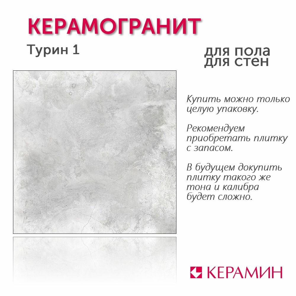Керамогранит Турин 1 серый 60х60 см (упак. 1.44 м. кв.) интересное:
